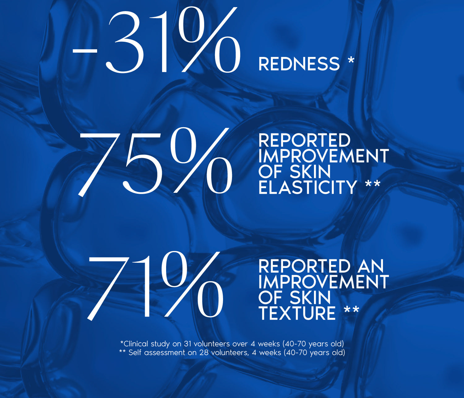 The first Nescens serum in the world that eliminates pro-aging cells, reduces redness and wrinkles, and rejuvenates skin while enhancing collagen production and improving skin elasticity.